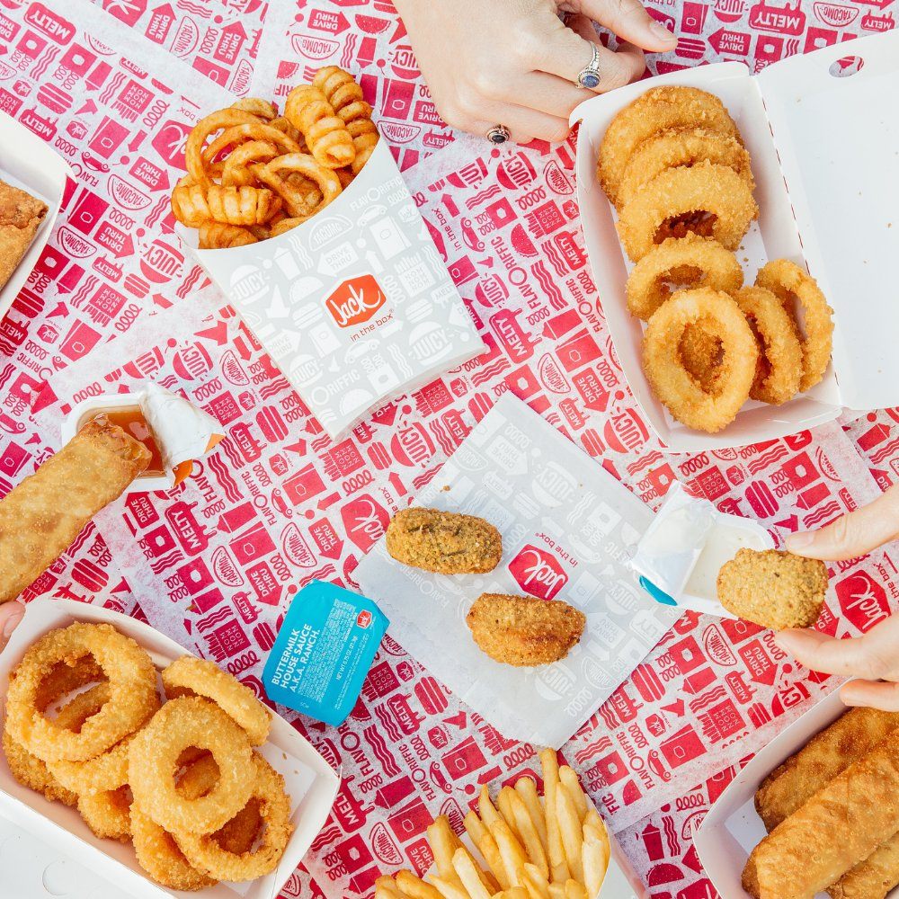 This box is packed with of Jack's fan faves like Curly Fries, 30 Chicken Nuggets, 39 Tiny Tacos, and of course your favorite dipping sauces.